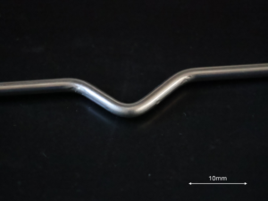 材質:SUS304線径:8mm,7mm内R:4 線形8mmのSUS304丸棒に対して、曲げ代が約20mmと短い曲げ代で曲げた加工品となります。切断面の面取り加工が必要だったため、曲げる前に面取りを行い、短い曲げ代で曲げて […]